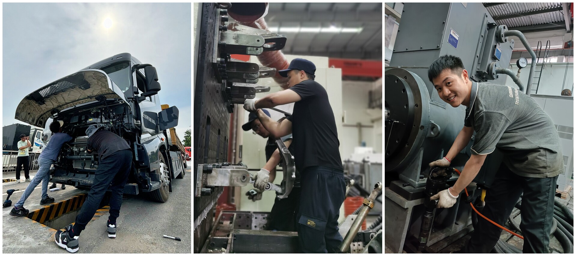 近日,重庆连续高温,中国汽研的工程师们坚守在工作一线:在炎炎烈日下,在火热的发动机变速器烘烤中,认真进行着减振器换装;在暑气蒸腾的车间里,冒着40℃的高温,专心致志地调试试验台架。