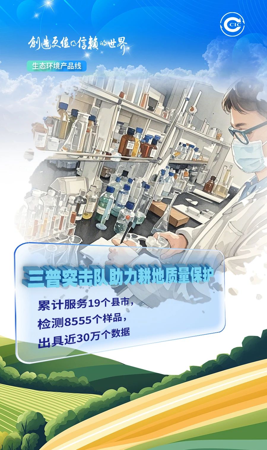 生态环境产品线组建专项工作组,服务第三次全国土壤普查工作,累计为19个县市提供技术支持,完成8555份土壤样品检测,出具检测数据近30万个。
