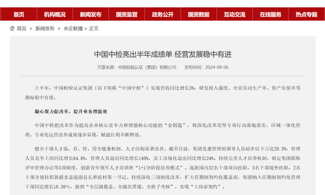 【中国中检亮出半年成绩单 经营发展稳中有进】