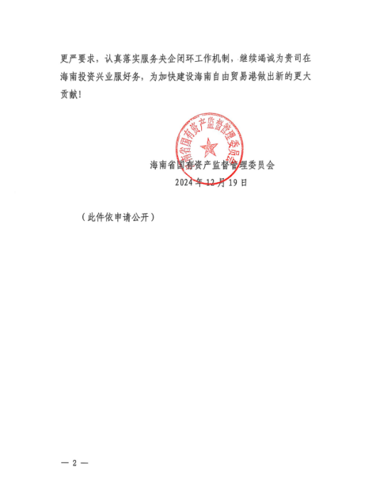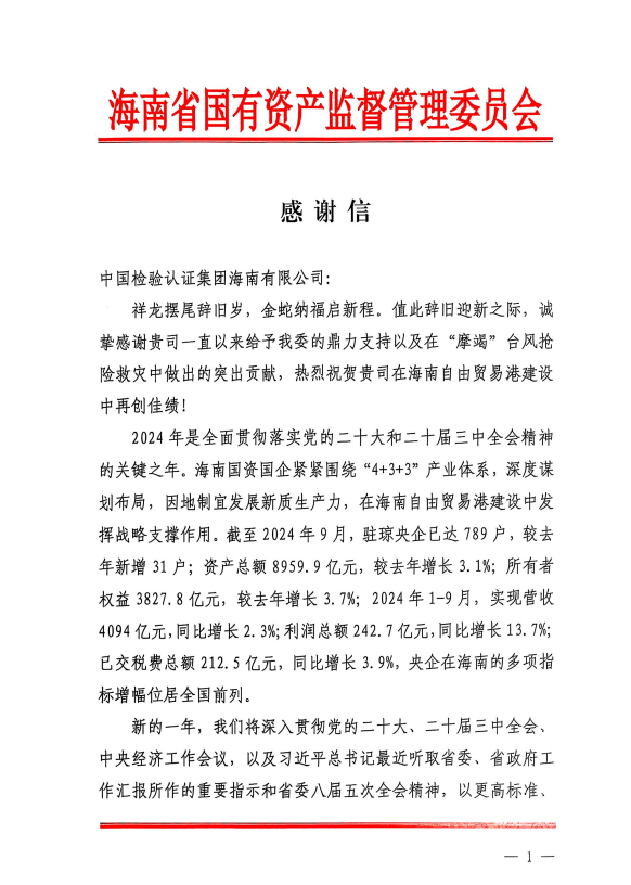 近期,中国中检华南区域海湛运营中心收到来自海南省国资委的感谢信。信中,海南省国资委感谢了海湛运营中心长期给予的鼎力支持,以及在“摩羯”台风抢险救灾中做出的突出贡献,并热烈祝贺运营中心在海南自由贸易港建设中再创佳绩。