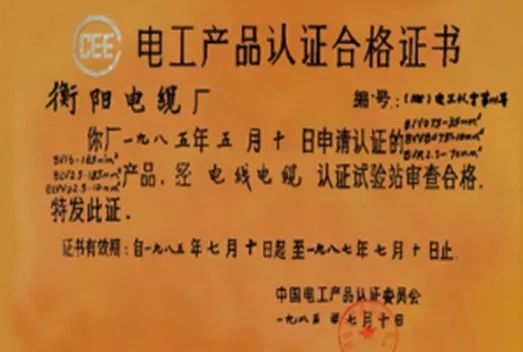 有了这张走向国际市场的“通行证”,衡阳电缆厂声名鹊起,用三年时间还清全部1200万元贷款,同时实现盈利1250万元,二十世纪九十年代起连续三年名列“中国500家最佳效益工业企业”。这张证书不仅对衡阳电缆厂意义非凡,也是中国电工产品认证历史上的起点,开启了中国产品走向世界的崭新篇章。