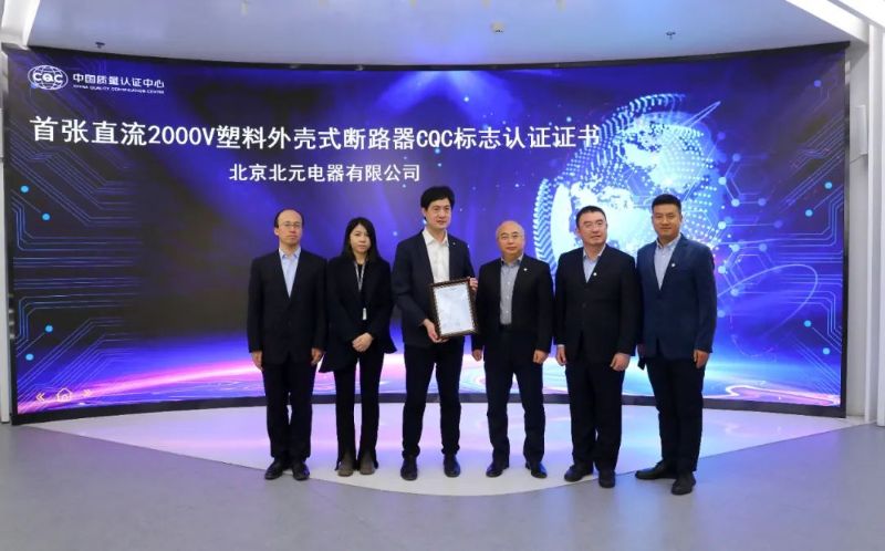 近日,输配电和工业电器产品线向北京北元电器有限公司颁发了首张直流2000V塑料外壳式断路器CQC标志认证证书。