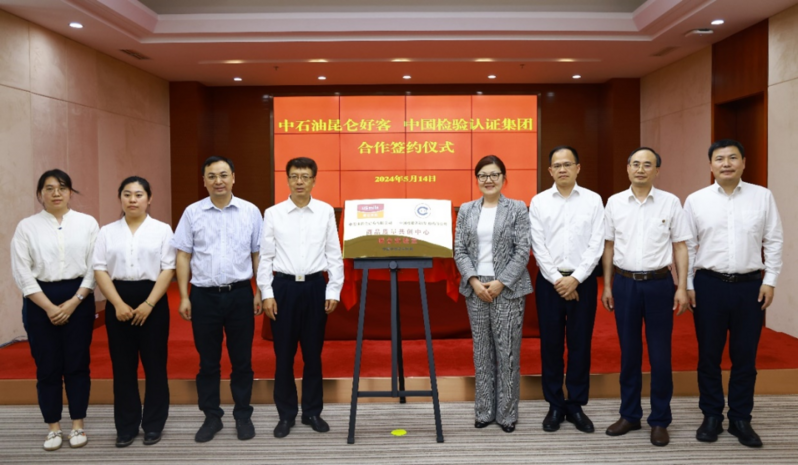 5月14日,中石油昆仑好客有限公司(简称“昆仑好客”)与中国检验认证(集团)有限公司(简称“中国中检”)在北京签署合作框架协议,同时举行昆仑好客与中国中检湖南公司联合实验室揭牌仪式。昆仑好客党委委员、副总经理陈建志,中国中检党委委员、副总经理王虹出席签约揭牌仪式。