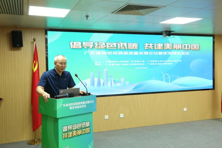 8月23日,由中国中检广东公司(华南区域总部)联合广州赛宝认证中心服务有限公司、广东省计量科学研究院、广东省节能工程技术创新促进会共同举办的“广东省绿色低碳高质量发展论坛”在广州圆满召开。广东公司副总经理卢恭福出席论坛并致辞。
